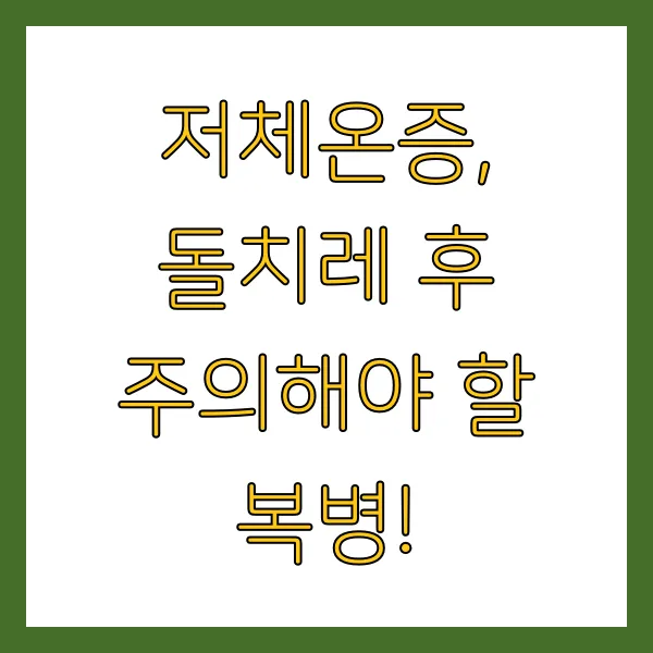돌치레 후 고열이 갑자기 떨어지면서 저체온증이 발생할 수 있습니다. 저체온증은 체온이 35℃ 이하로 떨어지는 것을 말하며, 심한 경우 의식 저하, 호흡 곤란 등의 심각한 증상을 유발할 수 있습니다. 돌치레 후 아이의 체온을 꾸준히 확인하고, 저체온증의 징후가 보이면 즉시 병원을 방문해야 합니다. 따뜻한 담요로 아이를 감싸주고, 따뜻한 음료를 마시게 하는 것도 도움이 됩니다.
